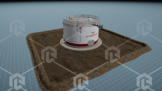 Стационарный интерактивный макет на мобильной платформе позволяет изучать оборудование и принцип работы стального вертикального резервуара хранения нефти с возможностью сенсорного ввода и управления, отображать трехмерные разрезы выбранного элемента оборудования на дисплее макета.