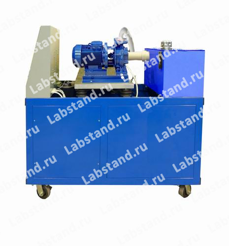Предназначен для изучения методов испытания центробежных насосов. На основании стенда, представляющим собой рамную конструкцию из металлического профиля установлен питающий бак рабочей жидкости — воды, модуль приводного двигателя, центробежный насос и система трубопроводов с кранами, датчиками давления и расходомером, шкаф управления.