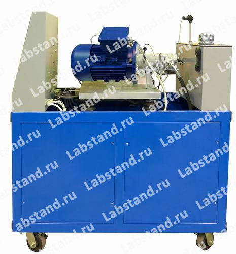Предназначен для изучения методов испытания шестеренных насосов типа НМШ. На основании стенда, представляющим собой рамную конструкцию из металлического профиля установлен питающий бак рабочей жидкости — масла, модуль приводного двигателя, шестеренный насос типа НМШ и система трубопроводов с кранами, датчиками давления и расходомером, шкаф управления.